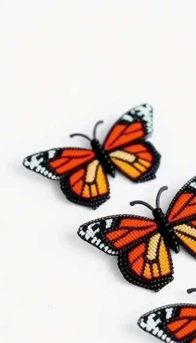 Для создания броши бабочки-монарха из бисера чаще всего используются техника петельного плетения и плоское бисероплетение. Петельное плетение позволяет создавать объемные элементы, идеально подходящие для тела и головы бабочки. Суть техники заключается в последовательном нанизывании бисера на нить с формированием петель, которые затем соединяются между собой.